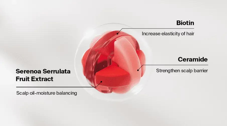 Effectively delivers scalp-strengthening ingredients deep into the scalp by utilizing the Folligen Complex ™. This complex enhances scalp absorption by encapsulating these three key ingredients.
