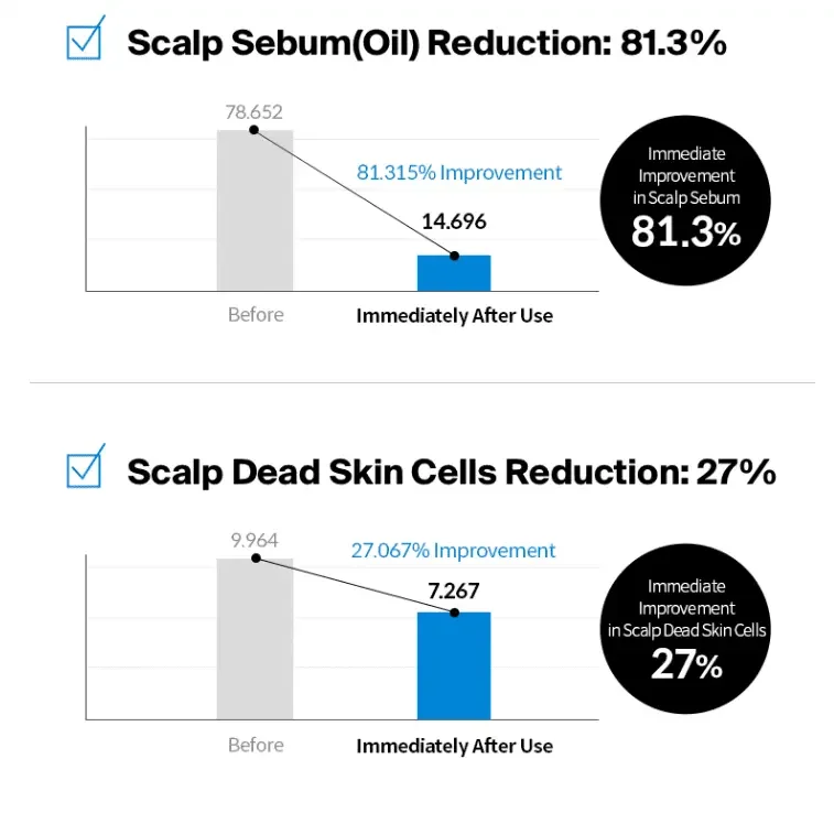 Thoroughly washes away excess scalp sebum and dead skin cells, creating a fresh scalp environment that lasts all day.